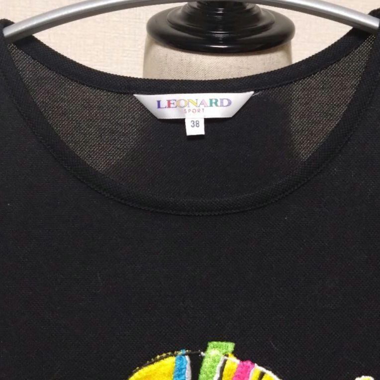 レオナールスポーツ LEONARD SPORT Tシャツ 40 黒 半袖 刺繍 ポロシャツ生地 レディース