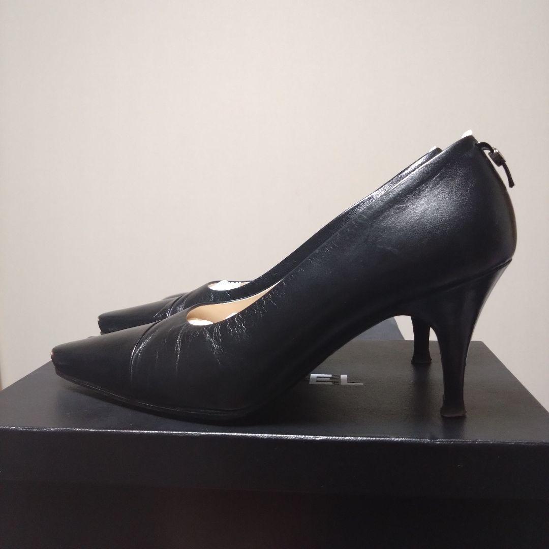 CHANEL シャネル の ココマーク 付きの ブラック のシンプルな パンプスハイヒール となります。