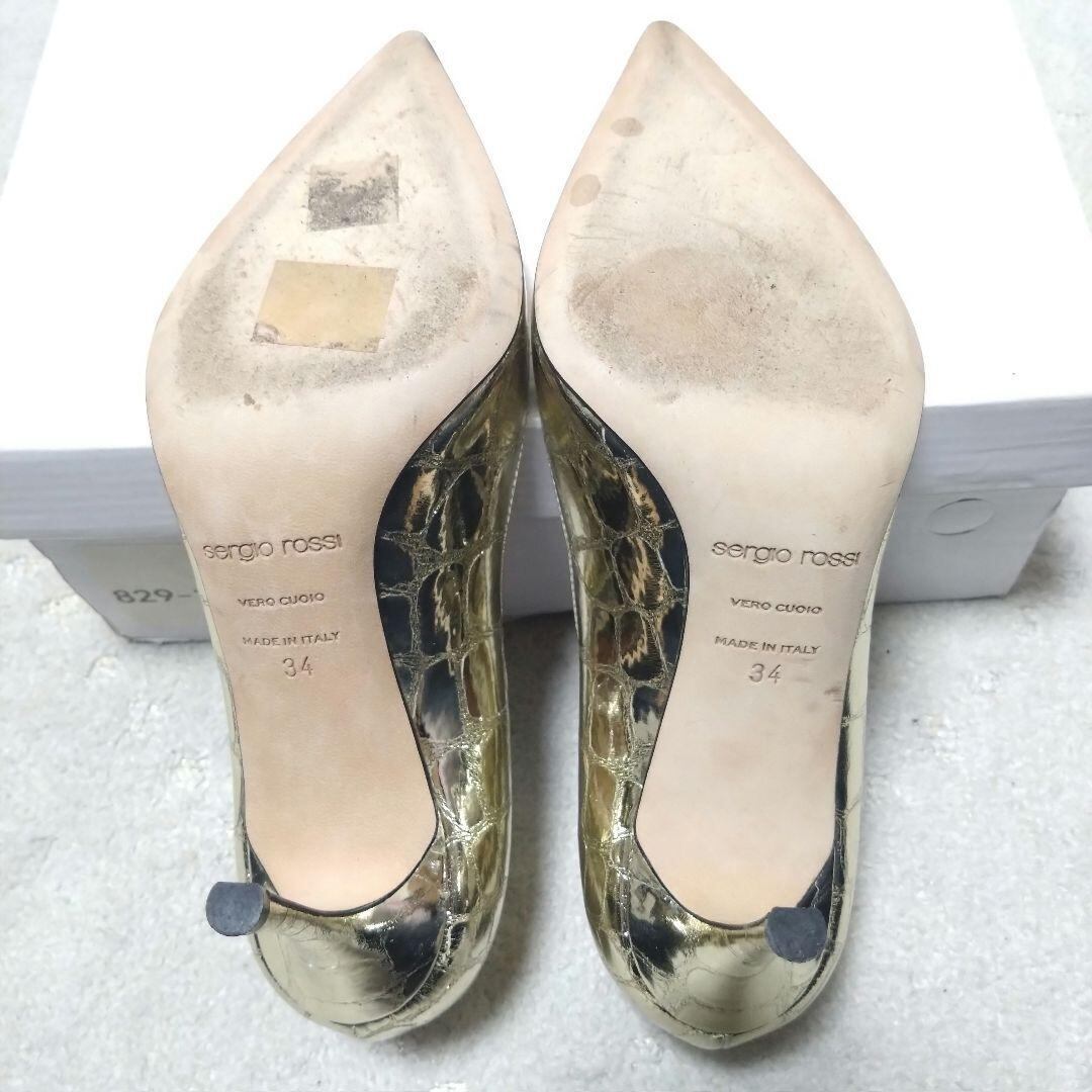 Sergio Rossi セルジオロッシのゴールドのピンヒールタイプのパンプスとなります。