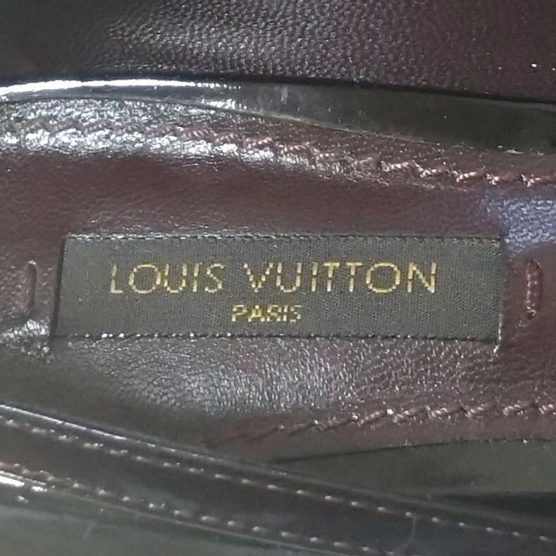 ルイヴィトンのアイコニックなモノグラム柄がさりげなくデザインされた、ブラックのパテントレザー(エナメル)パンプスです。